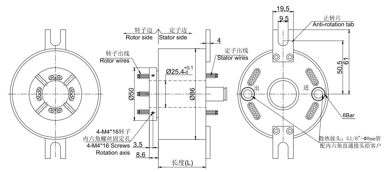 • · 高速過孔導(dǎo)電滑環(huán),整體精密導(dǎo)電滑環(huán),內(nèi)孔25mm,外徑86mm,最高轉(zhuǎn)速9000RPM。