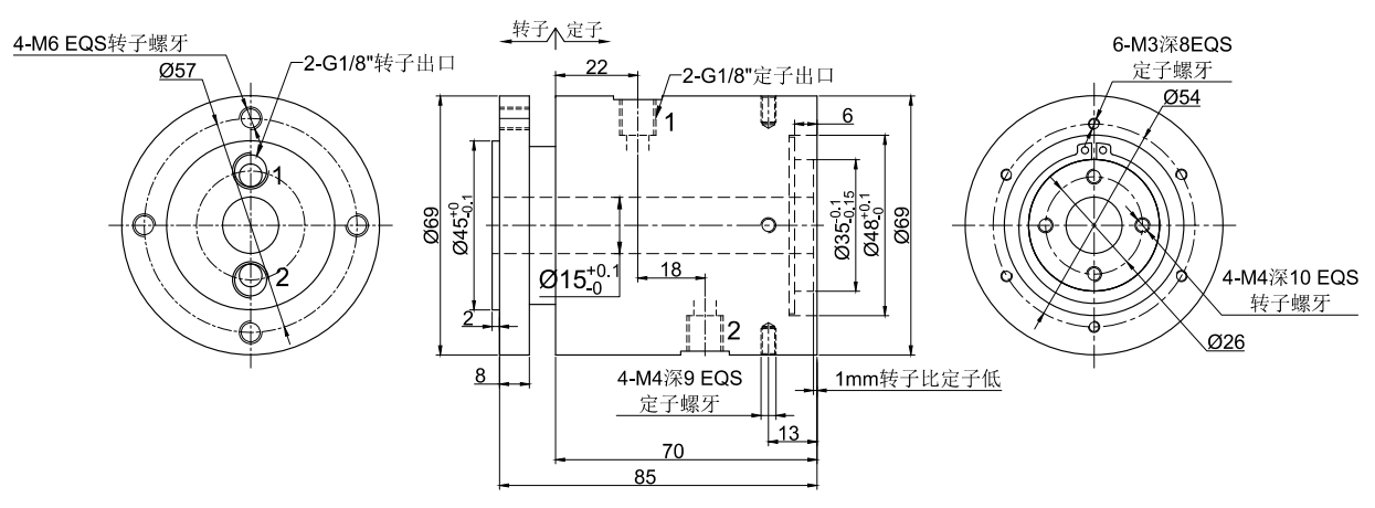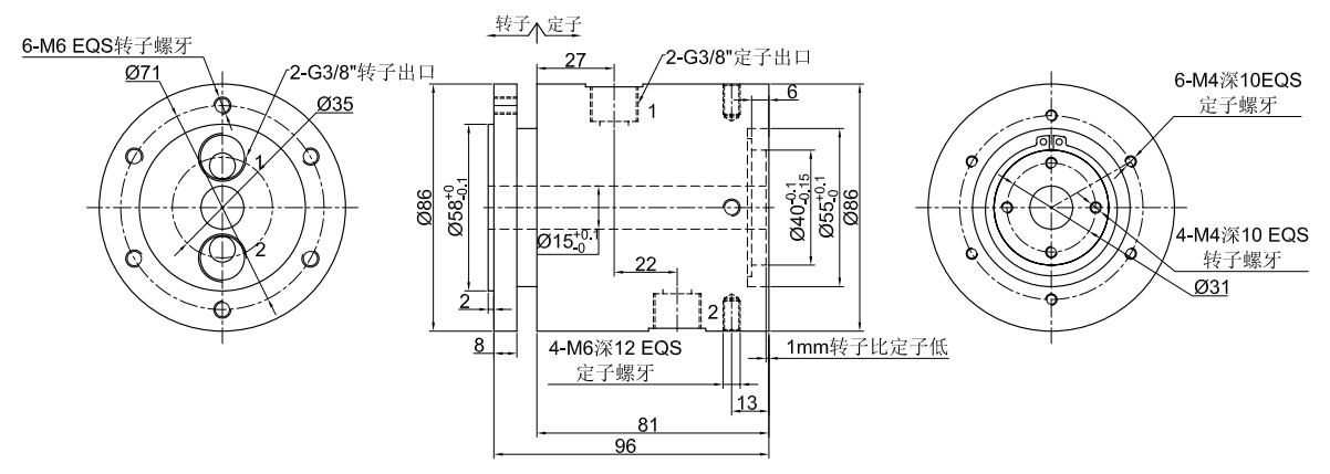 GJ2015系列 (中空15mm, 2進(jìn)2出, 中空氣液旋轉(zhuǎn)接頭,氣滑環(huán),液壓滑環(huán))