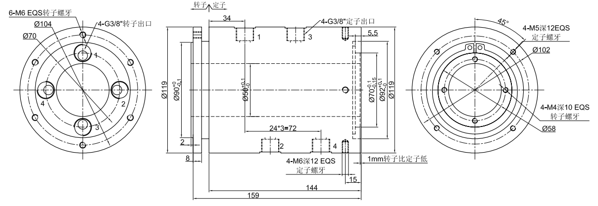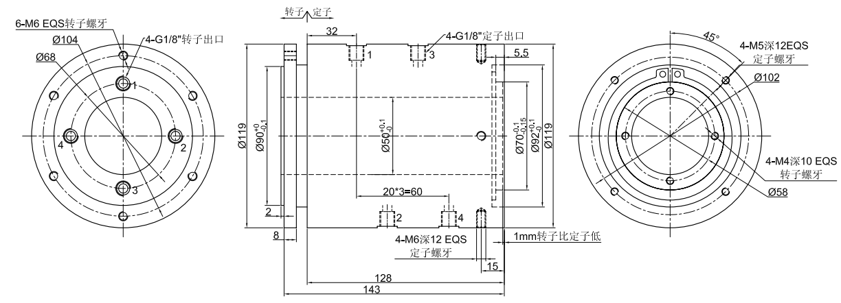 GJ4050系列 (中空50mm, 4進(jìn)4出, 中空氣液旋轉(zhuǎn)接頭,氣滑環(huán),液壓滑環(huán))