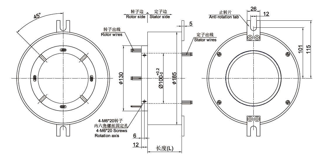 GT100185系列整體式精密導(dǎo)電滑環(huán),主要應(yīng)用于360度連續(xù)旋轉(zhuǎn)且需要保證電源,信號不能中斷的場合:多用于加熱滾筒、自動焊接設(shè)備、金屬表面加工設(shè)備、擠出流延復(fù)合設(shè)備、靜態(tài)扭矩傳感器、壓力變送器、工業(yè)機器 人、電線(網(wǎng)線)電纜生產(chǎn)設(shè)備、電子(紡織品)質(zhì)量檢測儀器、機器人生產(chǎn)線、汽車涂裝和裝配線的車間設(shè)備改裝、加速度傳感器、研磨分散機、旋轉(zhuǎn)餐桌等任意需要360°旋轉(zhuǎn)導(dǎo)電或傳輸各種控制信號的裝置。