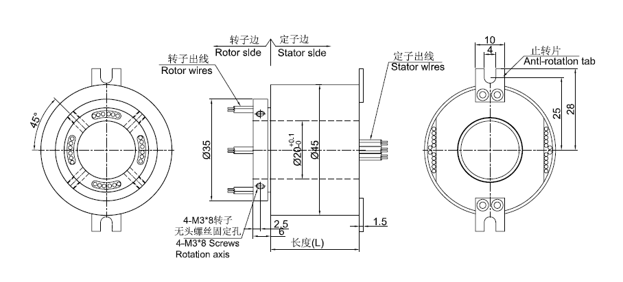 GT2045系列滑環(huán),主要應(yīng)用于360度連續(xù)旋轉(zhuǎn)且需要保證電源,信號(hào)不能中斷的場(chǎng)合:多用于各種自動(dòng)貼補(bǔ)強(qiáng)機(jī)、自動(dòng)焊接設(shè)備、精密模切機(jī)、鉚釘插件機(jī)、桌面點(diǎn)膠機(jī)、分選機(jī)、切紙機(jī)、裹式包裝機(jī)、全自動(dòng)軟抽袋立封口一體機(jī)、半自動(dòng)臥式軟抽袋雙頭封口機(jī)等任意需要360°旋轉(zhuǎn)導(dǎo)電或傳輸各種控制信號(hào)的裝置。