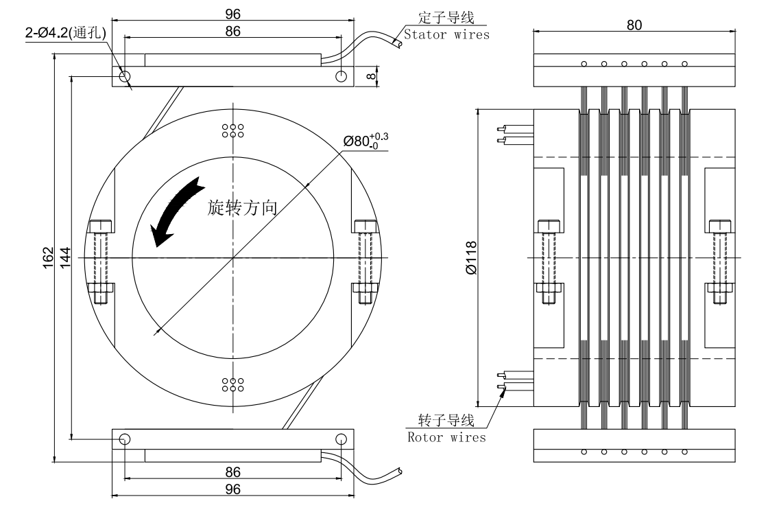 MSP380系列 (孔徑80mm, 6路10A)分體式電滑環(huán)