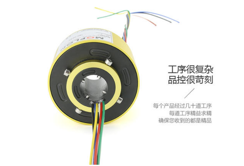導電滑環(huán)的連接方式與其外形尺寸和結構密切相關,一般分為過孔式、法蘭式、分體式等幾種類型。其中過孔式滑環(huán)的接線方式是從滑環(huán)的兩端出線,轉(zhuǎn)子中心軸的端面引出線來,如果通路數(shù)非常多,會有兩三個橢圓形出線孔,定子端出線一般是側邊的端面上引出線,通常為1~2個橢圓形出線孔;如果是法蘭式的,定子端和轉(zhuǎn)子端可從滑環(huán)中間引出。如果滑環(huán)很大,也可以從側面引出。而分體式導電滑環(huán)與前兩種不同。分體式的滑環(huán)轉(zhuǎn)子端出線是中心軸的軸壁上出線,定子端就是從側面的刷架上引出線來,分體式的出線方式跟以前的傳統(tǒng)碳刷滑環(huán)出線方式相同。