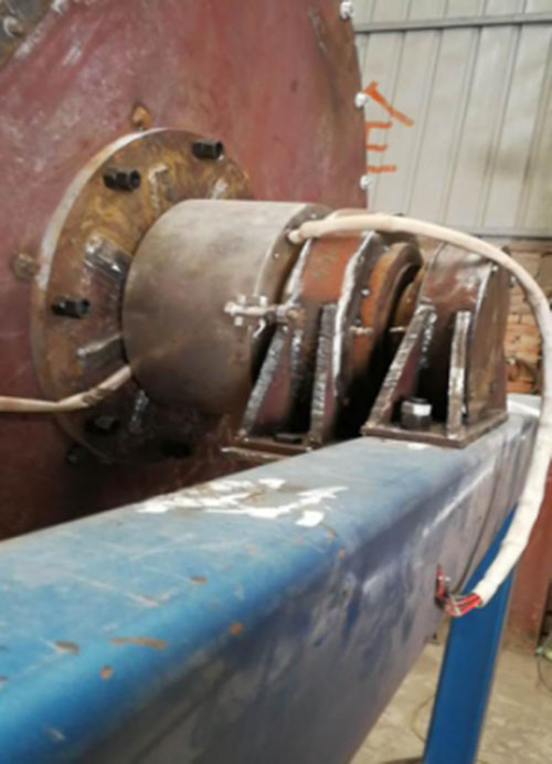 攪拌機由安裝于攪拌軸上的內(nèi)外徑螺旋帶動桶體內(nèi)物料翻動,使攪拌器在桶體內(nèi)最大范圍翻動橡膠等物料,讓橡膠在桶體內(nèi)循環(huán)、剪切滲混,完成橡膠在較短時間內(nèi)快速均勻混合。因此需在攪拌機上使用大電流滑環(huán)為攪拌機同軸旋轉(zhuǎn)的設備需要供電及傳遞測溫信號。